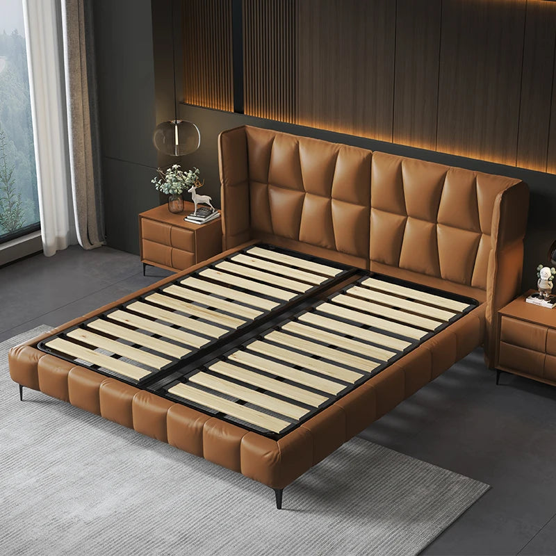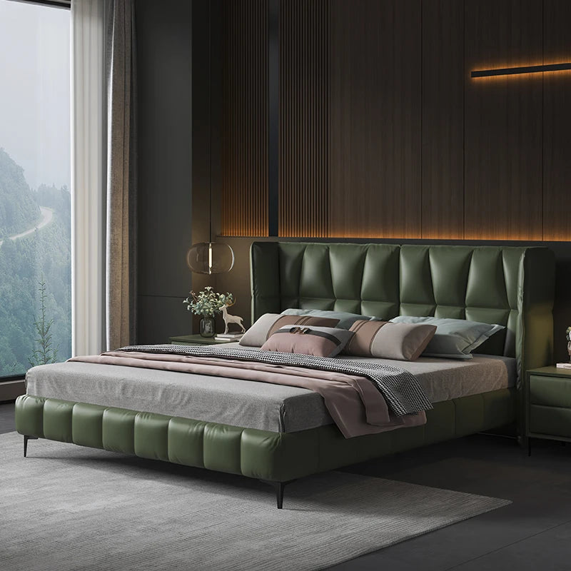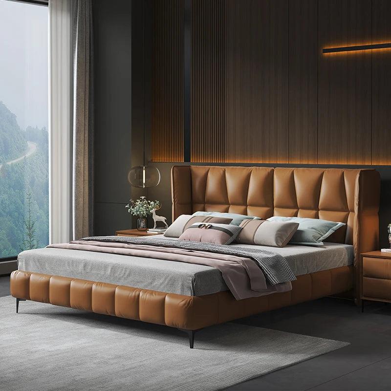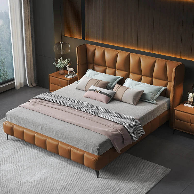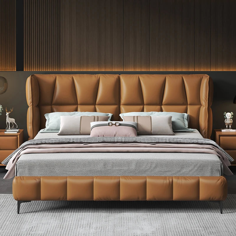 Italian Minimalist Leather Light Luxury Modern Bedroom Soft Bag Double Bed