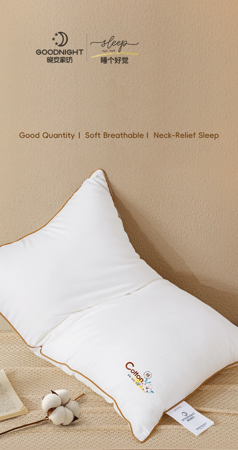 Goodnight High Quality One Piece Soft Bed Neck Pillows Hotel Supplies Skin Friendly Cotton Pillow for Sale