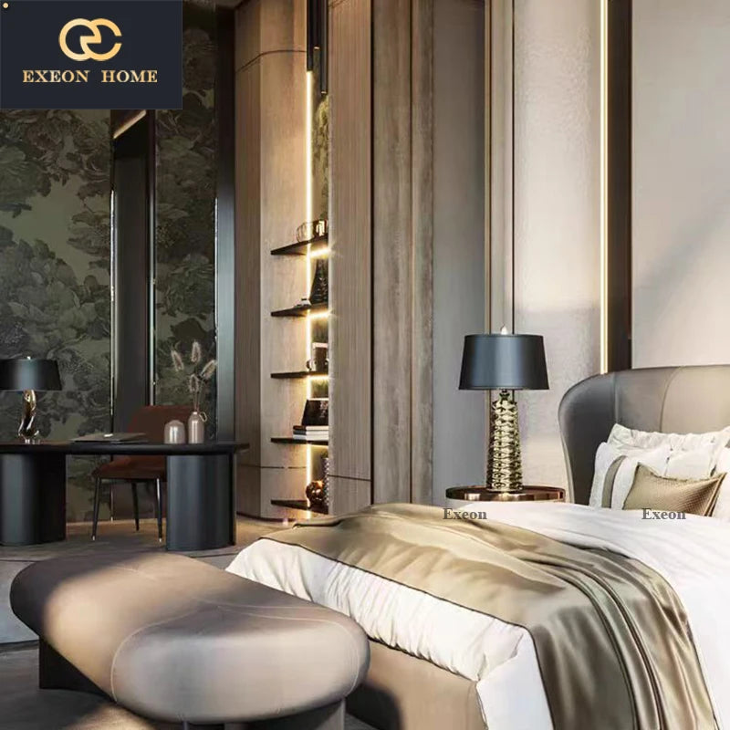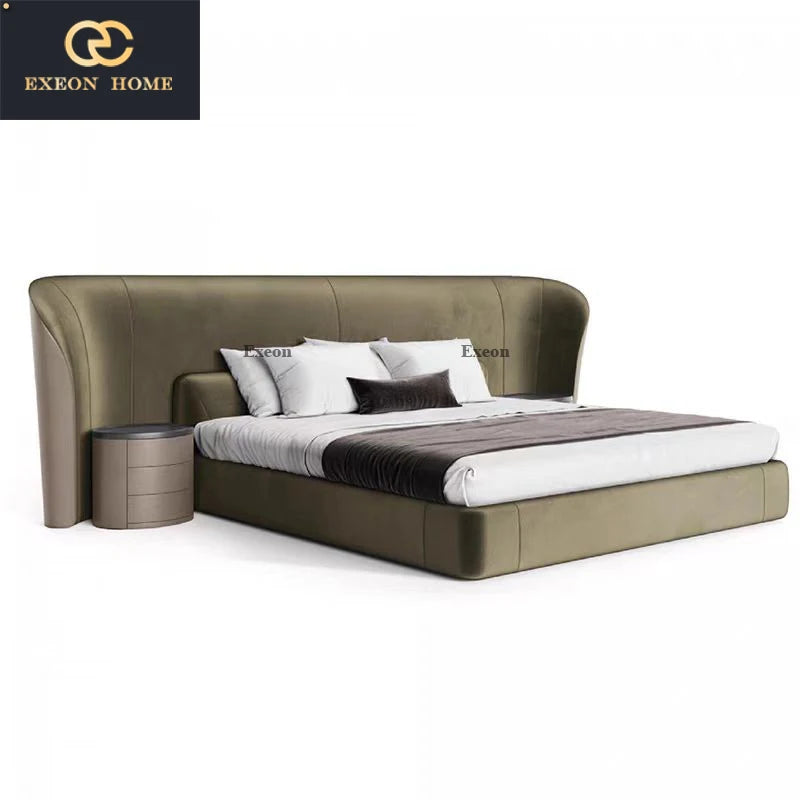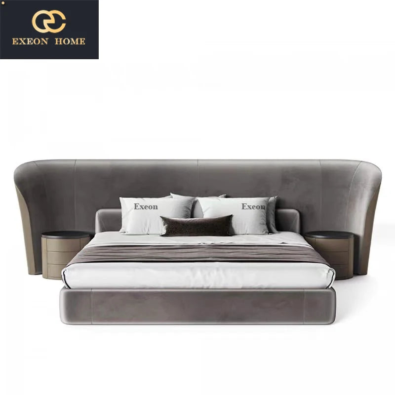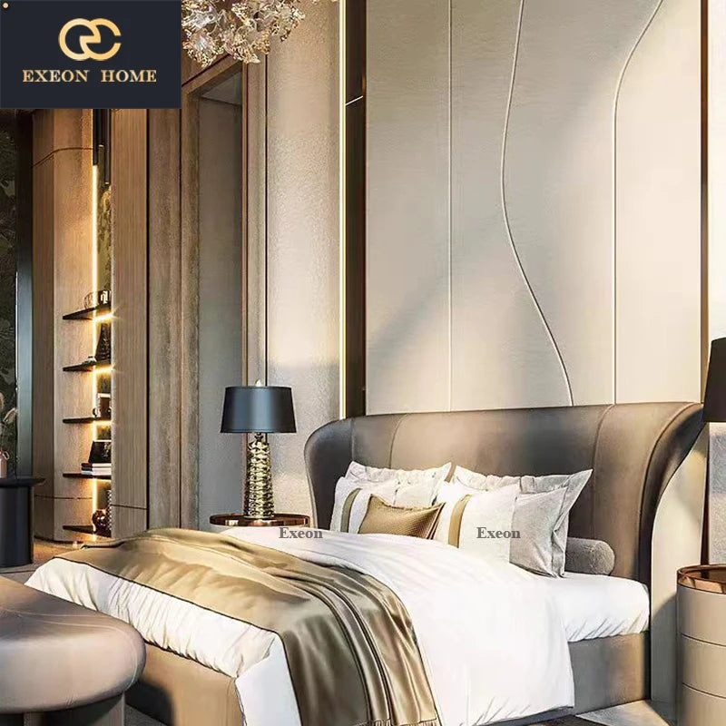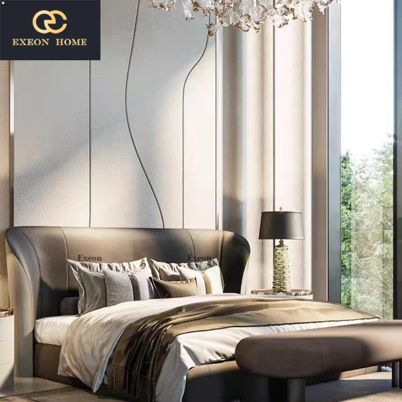 Italian luxury leather queen bed (2m), elegant design for master bedrooms.