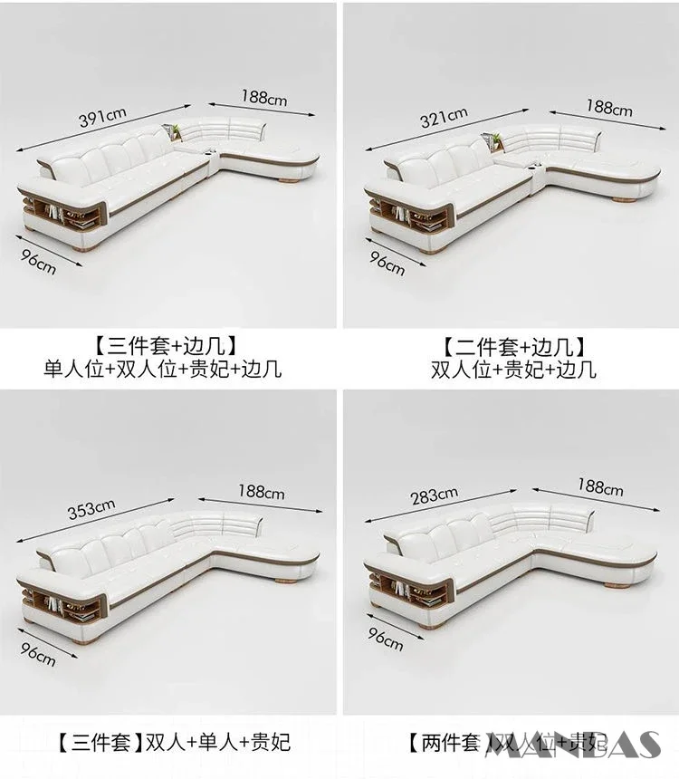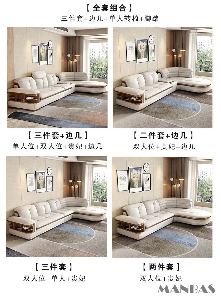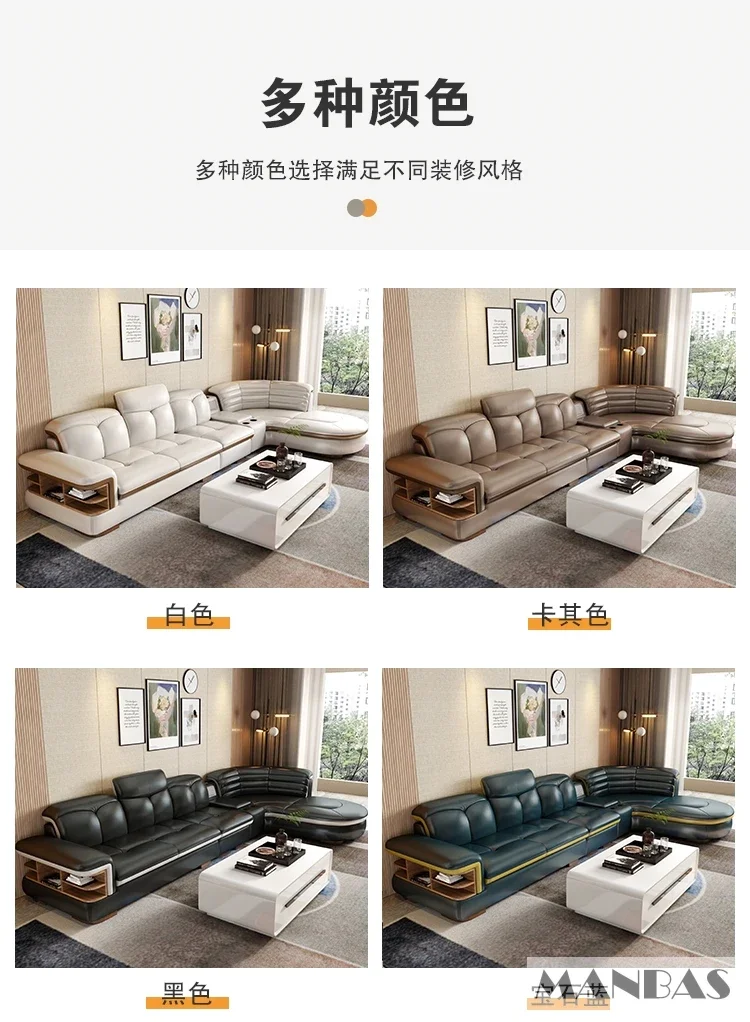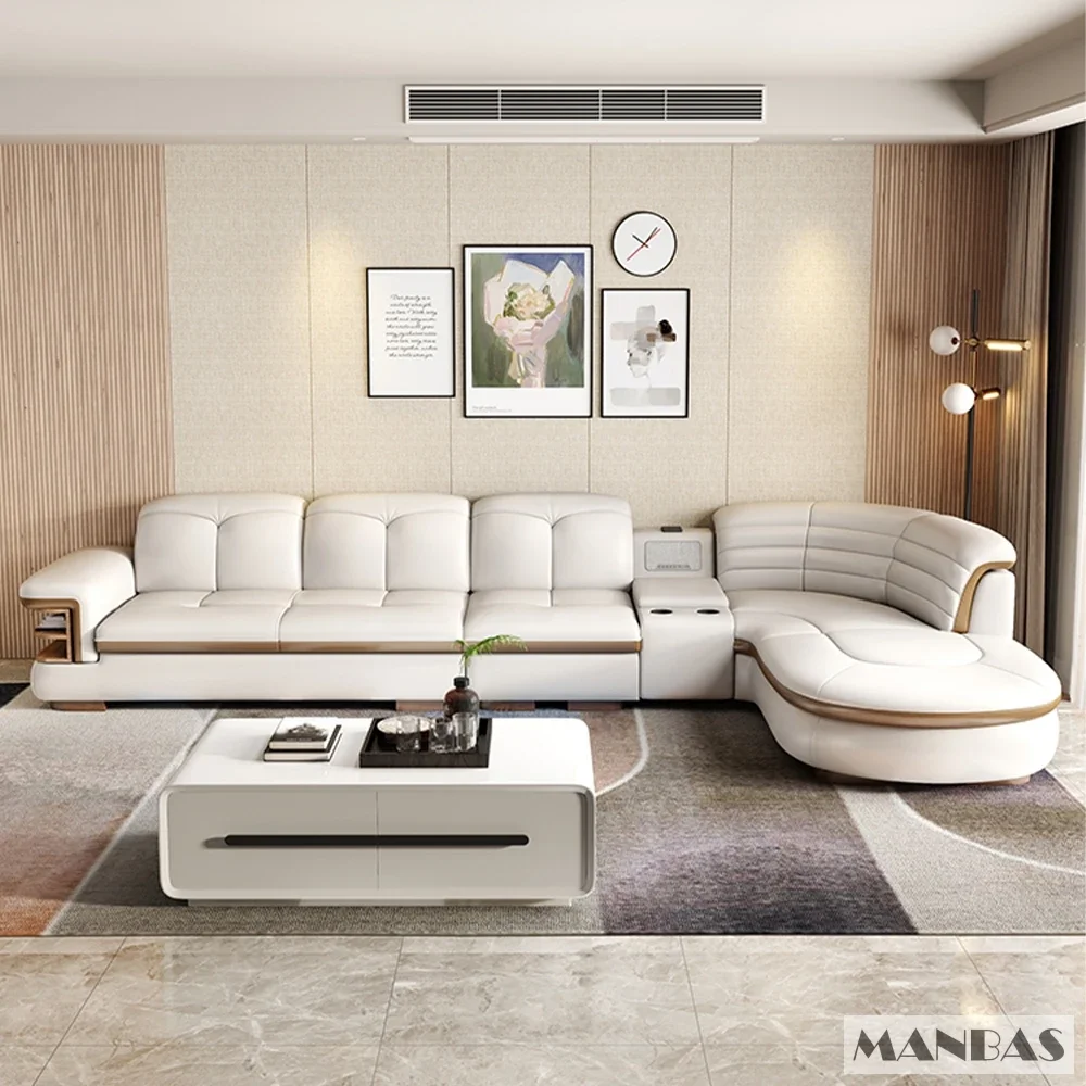 Luxury L-Shaped Genuine Leather Sectional Sofa Sets with USB, Bluetooth Speaker - MANBAS Living Room Italian Leather Couches