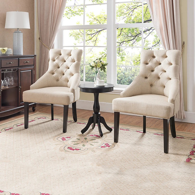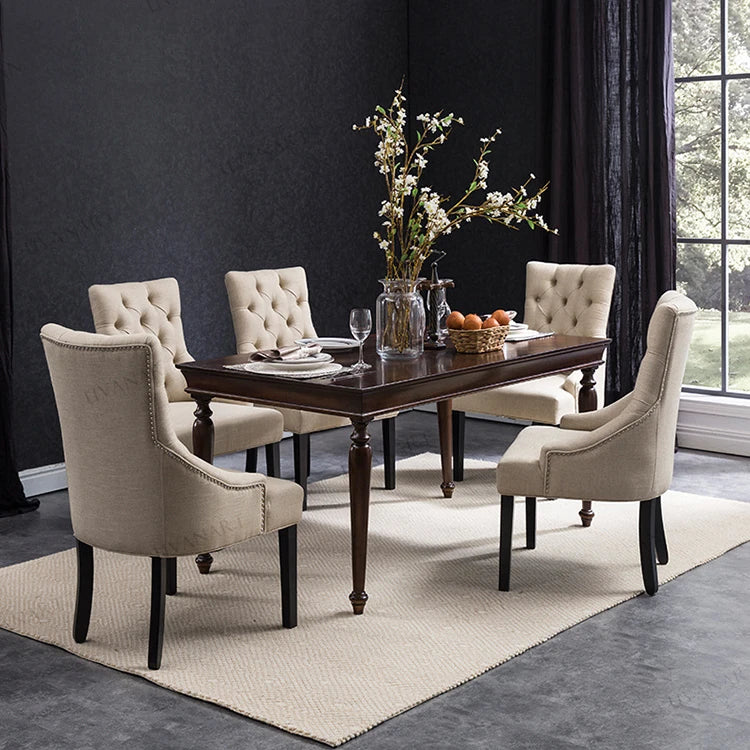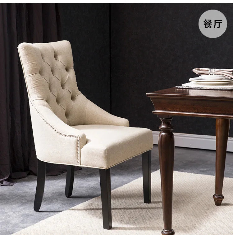 Luxury velvet dining chair with solid wood frame and tufted button design.